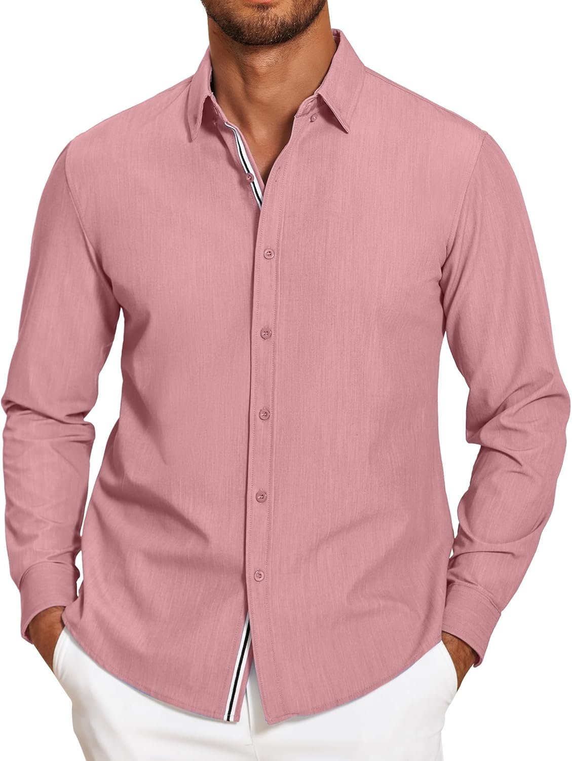 • TRENDY DESIGN — Well-designed mens casual dress shirt, regular fit, spread collar, button closure, adjustable cuffs, simple design style. Add contrasting color webbing for low-key fashion. This shirt is a must-have for a city chic look.