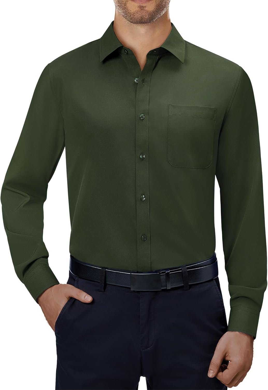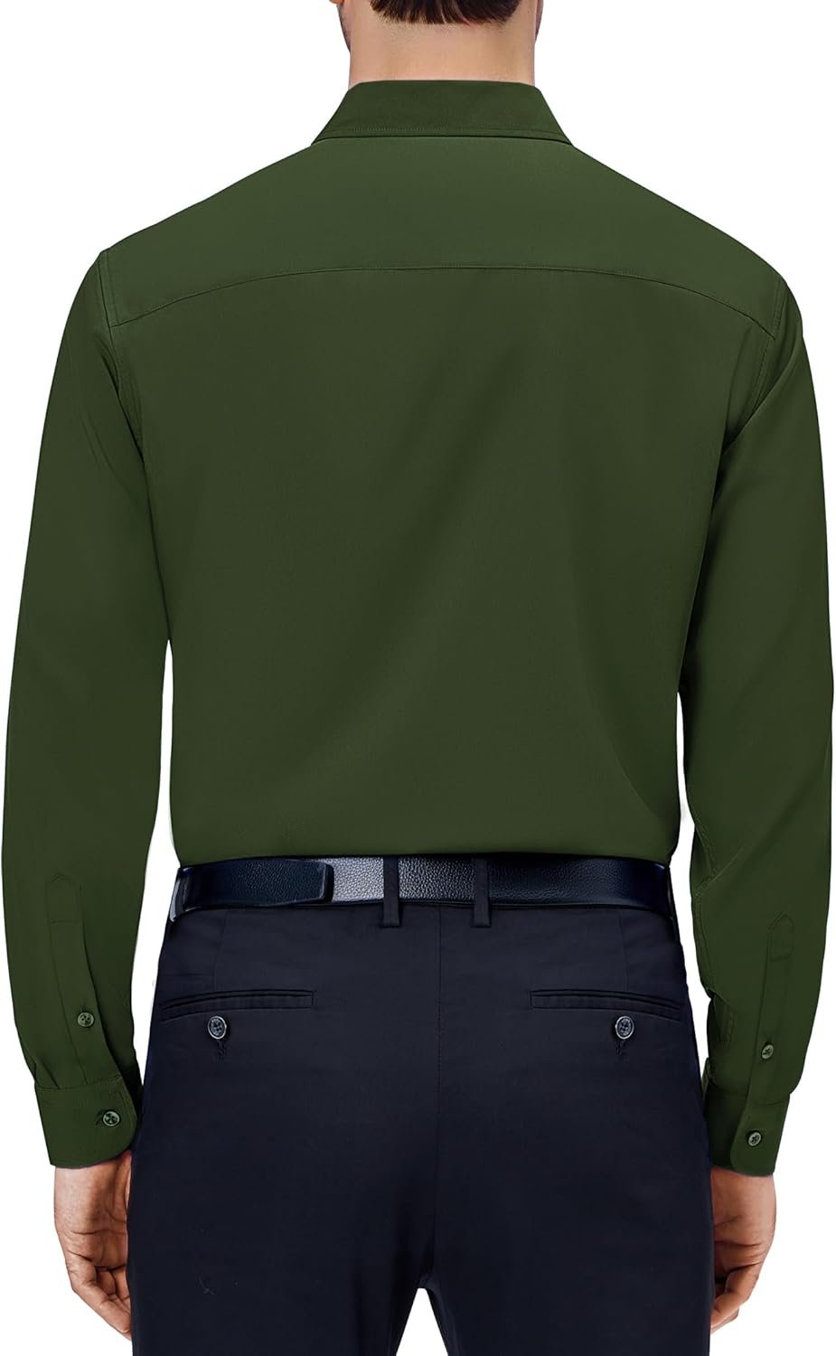 Mens Dress Shirts 4-Way Stretch Long Sleeve Collared Casual Solid Wedding Dating Button Down Shirt